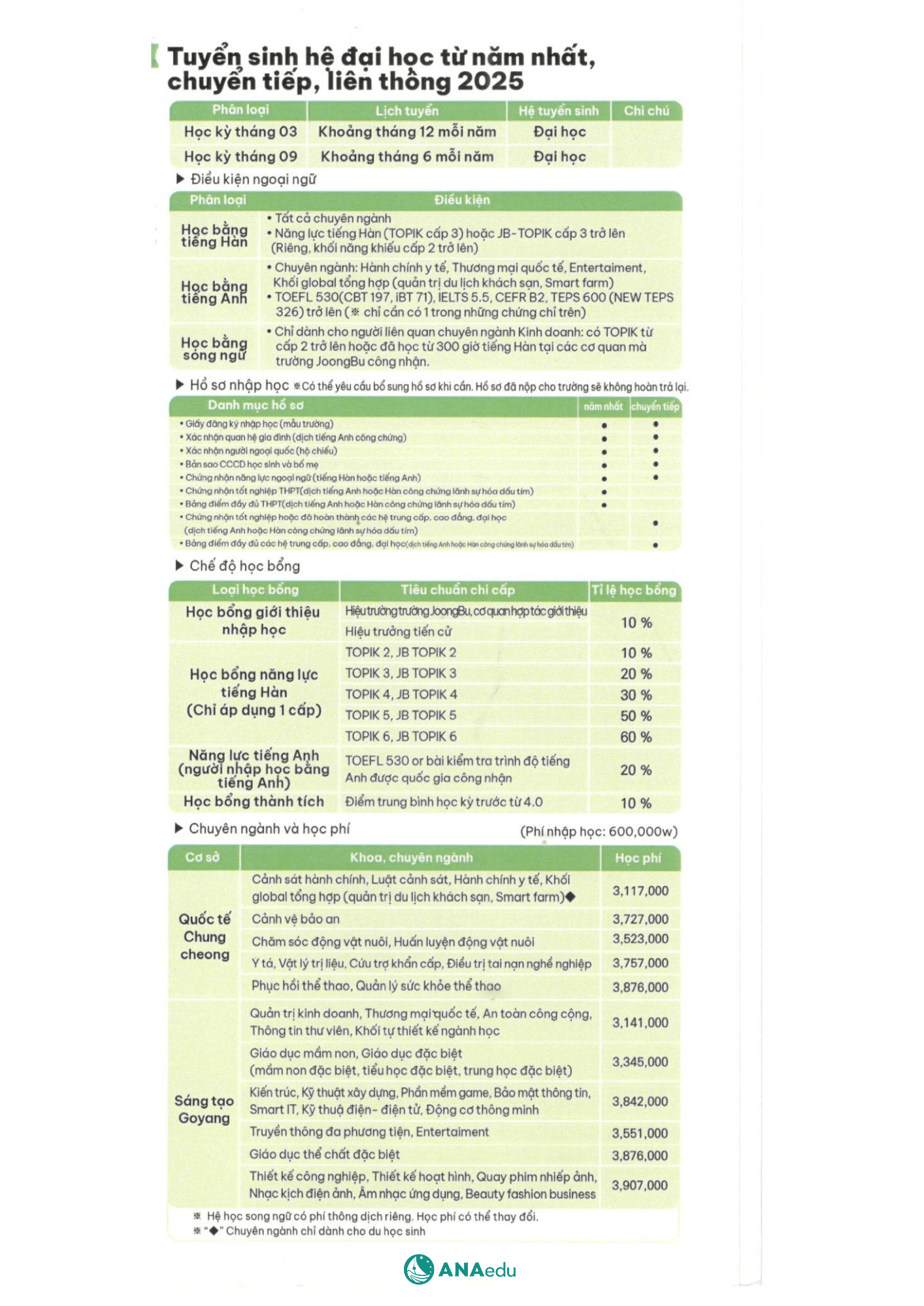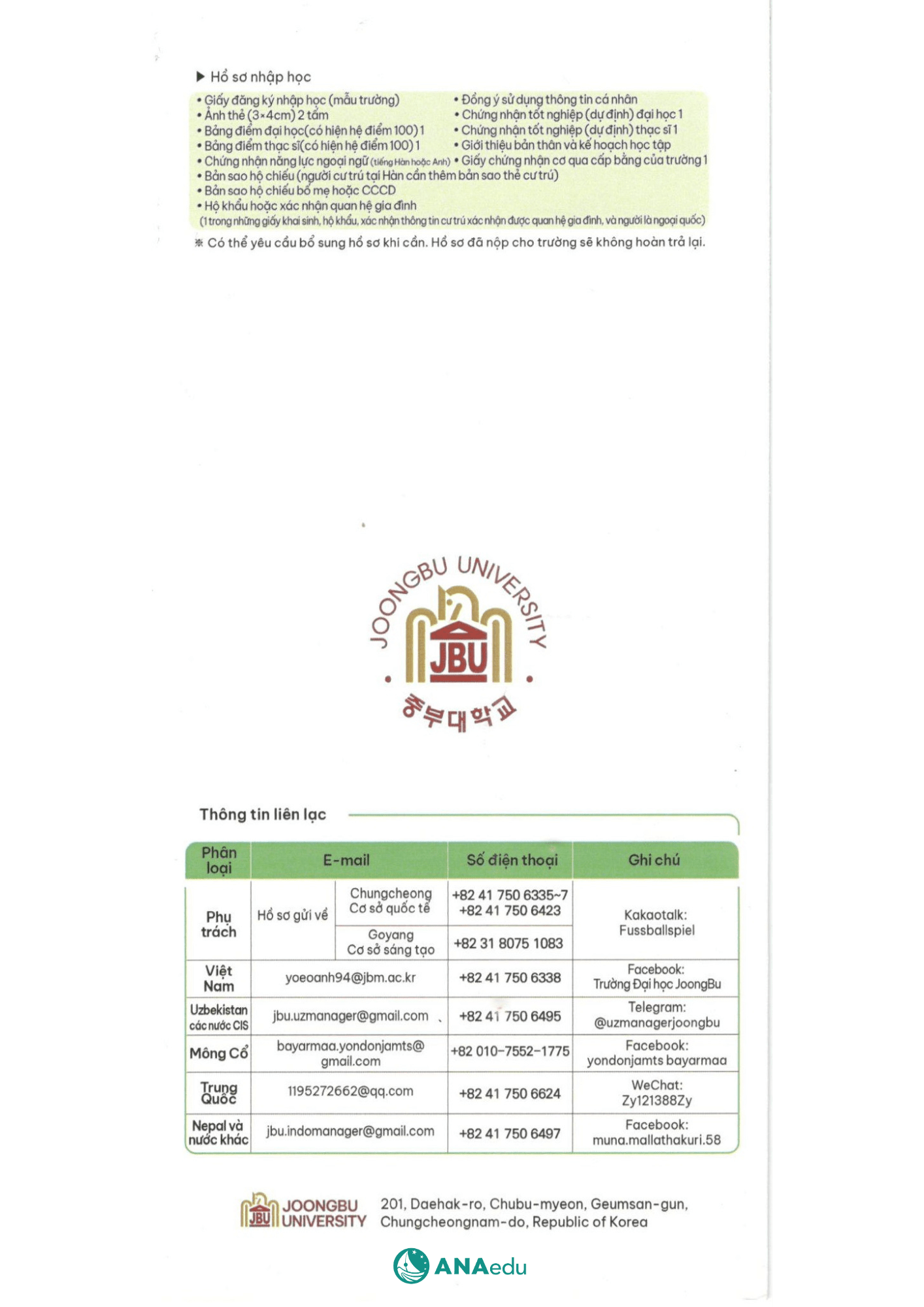 Liên hệ ngay với ANAedu để được tư vấn chi tiết, định hướng ngành học phù hợp và đồng hành trong quá trình chuẩn bị hồ sơ du học tại Joongbu University.