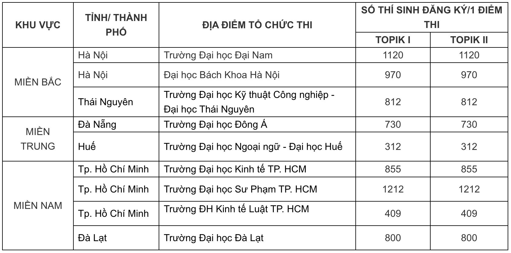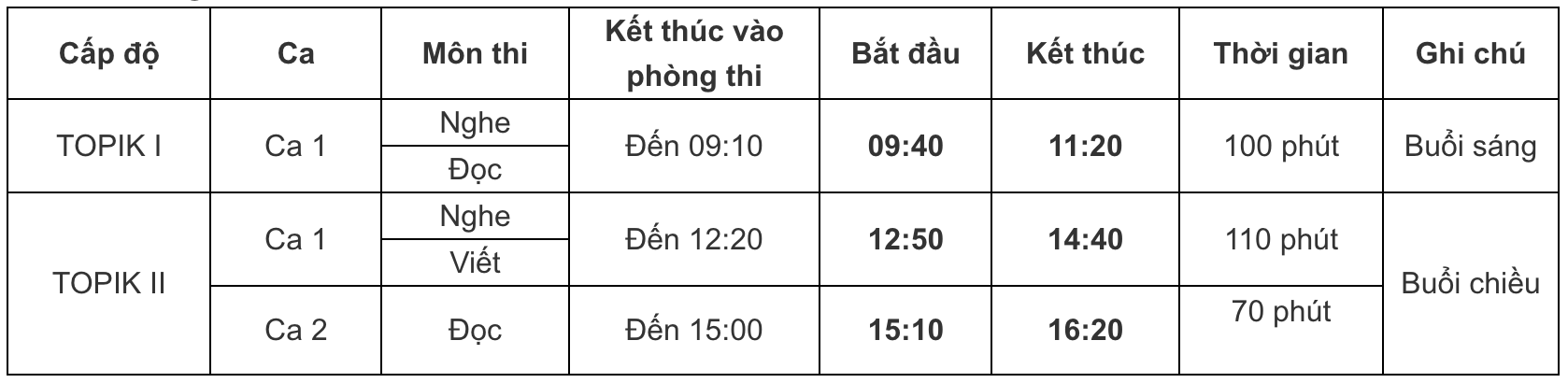 - Lệ phí thi: TOPIK I: 550.000VNĐ (đã gồm VAT) / TOPIK II: 770.000VNĐ (đã gồm VAT)