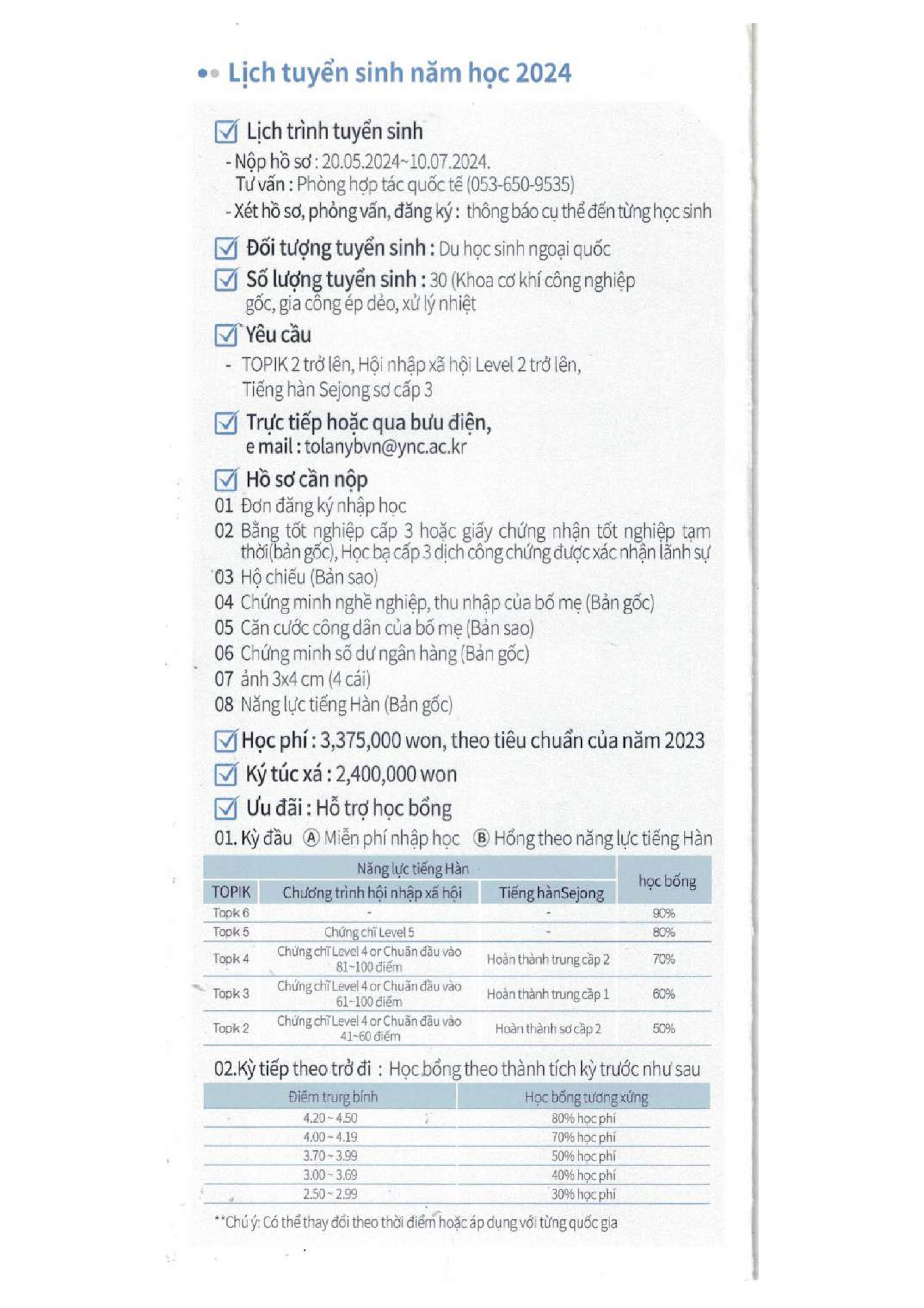 Hơn 50 năm thành lập và đào tạo, trường Đại học Yeungnam đã đạt được những thành tích nổi bật như sau: